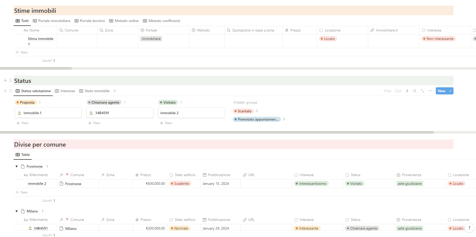 Nella sezione “immobili”, invece, abbiamo creato delle particolari viste per poter controllare da più prospettive diverse le stesse informazioni.