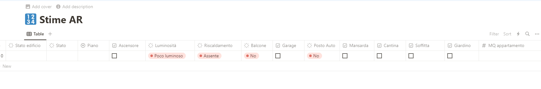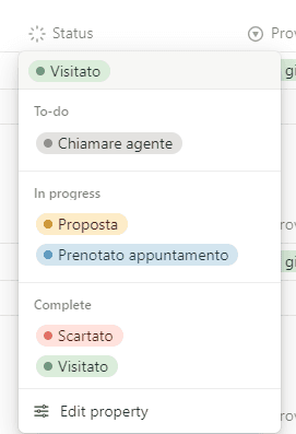 Come accennato, per ogni database abbiamo usato delle proprietà estremamente personalizzate e funzionali per l’attività di Antonio come, ad esempio, gli status delle sue visite agli edifici.