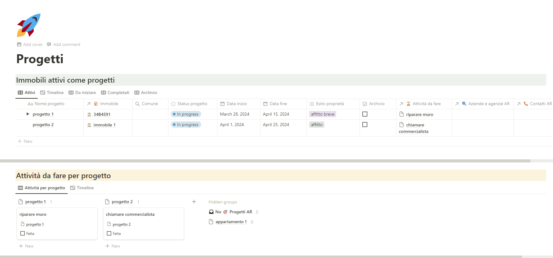 In base alle informazioni raccolte, abbiamo iniziato a costruire una serie di database fondamentali: immobili, comuni, contatti documenti, attività, progetti.