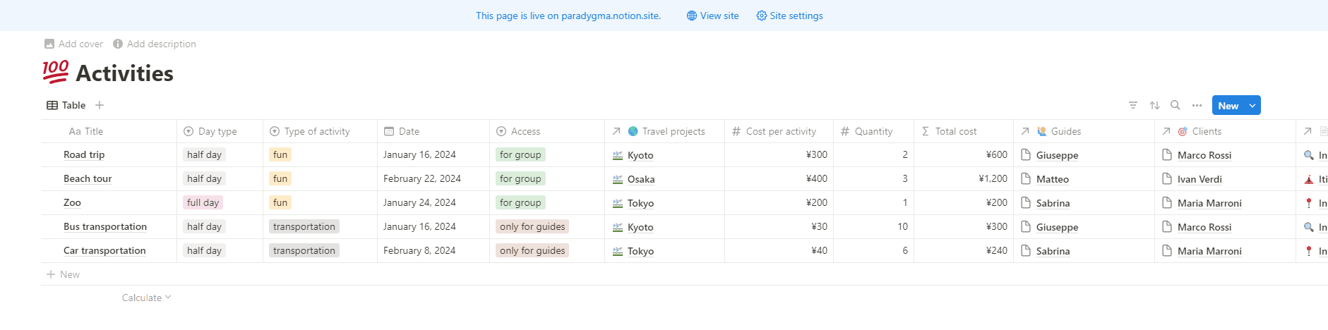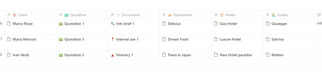 Costruzione del sistema di gestione di una Travel Agency su Notion