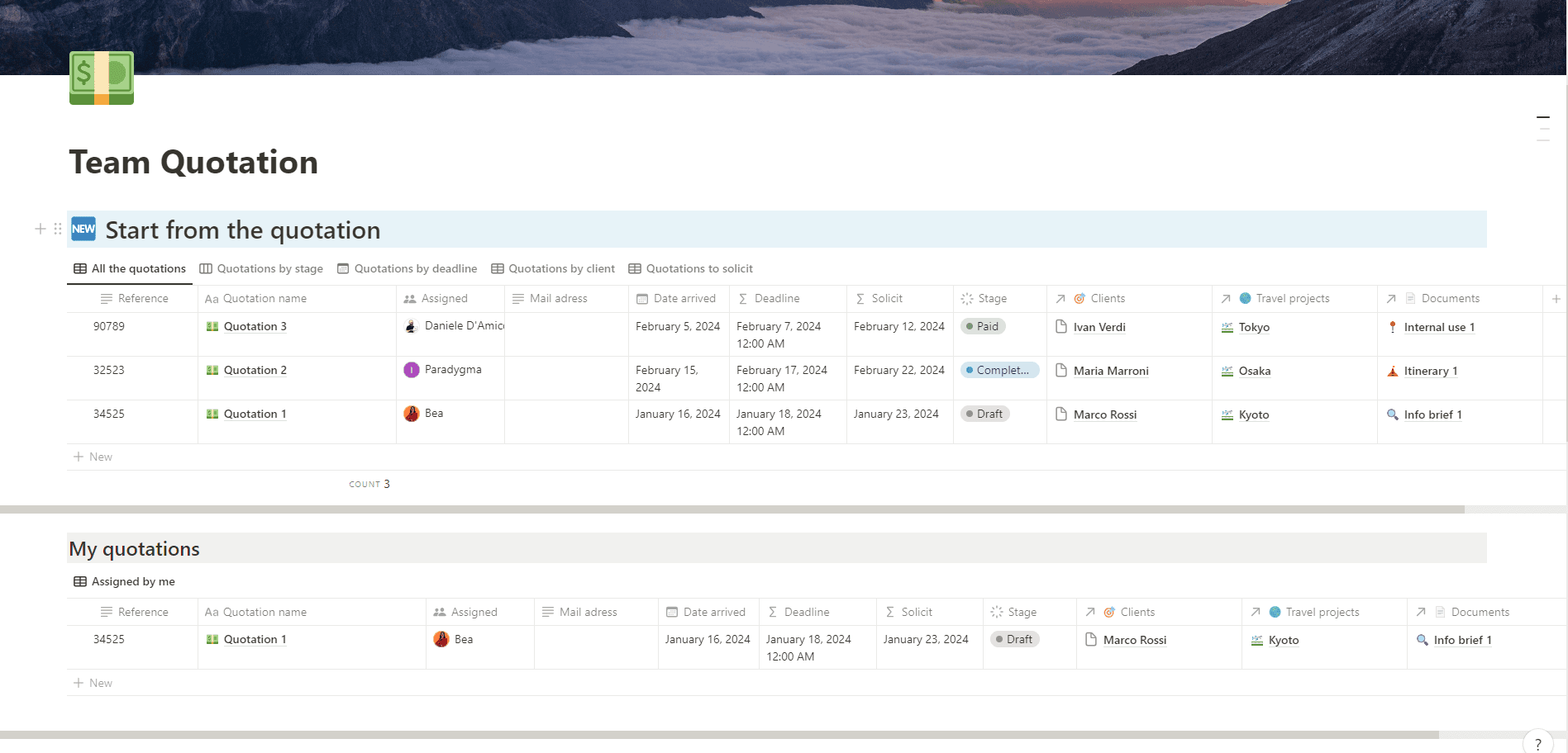Partendo dal Team Quotation, le viste dei database sono state create in modo ordinato appositamente per guidare e facilitare il flusso di lavoro del team.