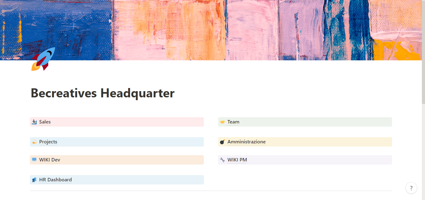 Grazie ad una struttura relativamente semplice: un database CRM con diverse viste, uno dei Progetti e uno del Team, siamo riusciti a creare un sistema efficiente ed estremamente personalizzato per la gestione delle attività di Becreatives.