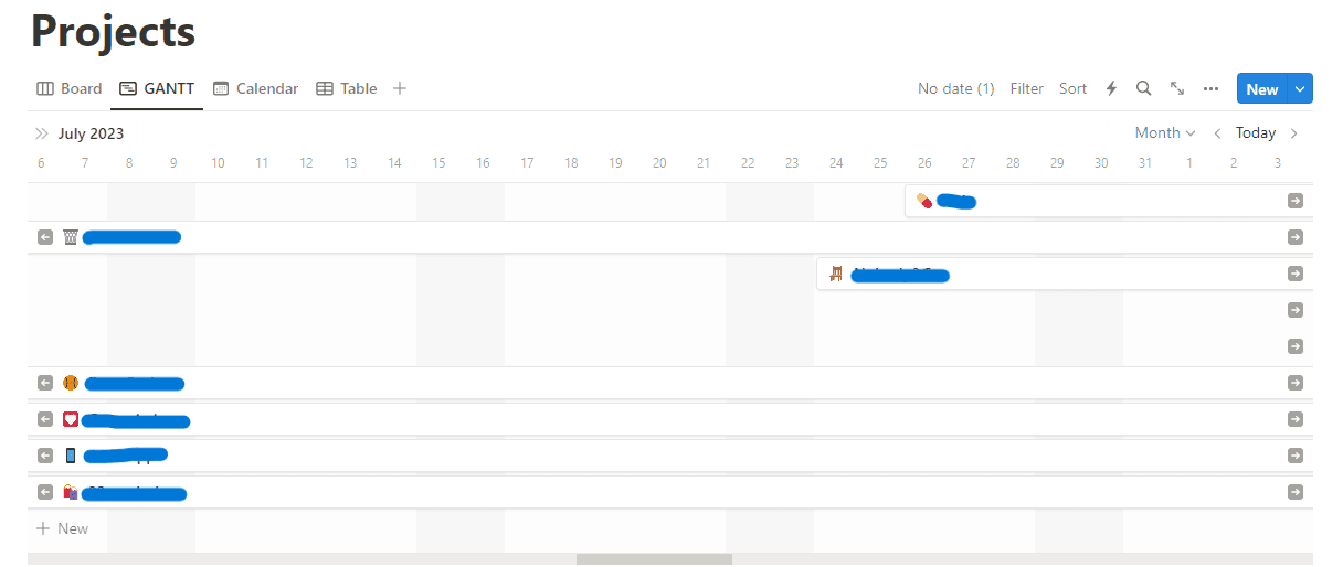 Del database Progetti, inoltre, è stata creata una vista GANTT per rendere ancora più semplice la visualizzazione dei periodi di lavoro del progetto.