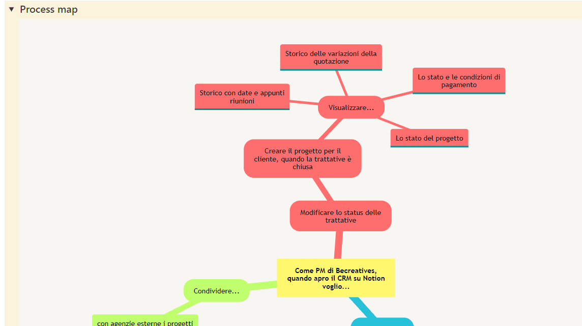 Come prima cosa siamo partiti dal processo di vendita di Becreatives, che ci è stato descritto nel dettaglio in call di kick-off, e l’abbiamo mappato.